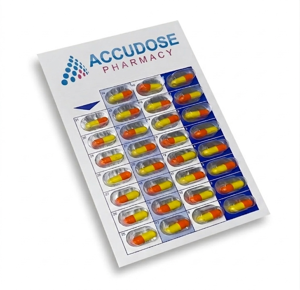 Instead of a dozen confusing pill bottles, we provide medications in organized, labeled blister packs or multi-dose pouches. Each dose is sorted by date and time (e.g., Morning, Noon, Evening, Bedtime), which significantly reduces errors and helps patients focus on their therapy rather than their pill count.